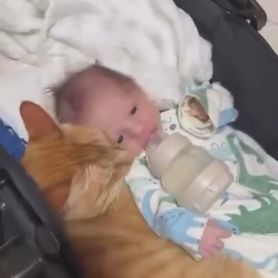 A touching moment of warmth and friendship — as a baby drinks from a bottle, the family’s ginger cat curls up close, gently resting its head against the newborn as if to keep them both warm. Shared on Instagram by @tiagodanielveterinario on May 31, 2025, this adorable clip of unexpected tenderness has captured hearts online, reaching over 1.3 million views and 166,000 likes.