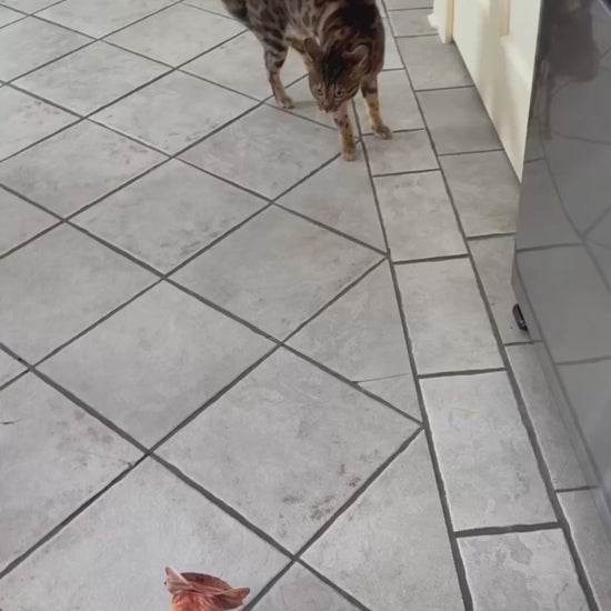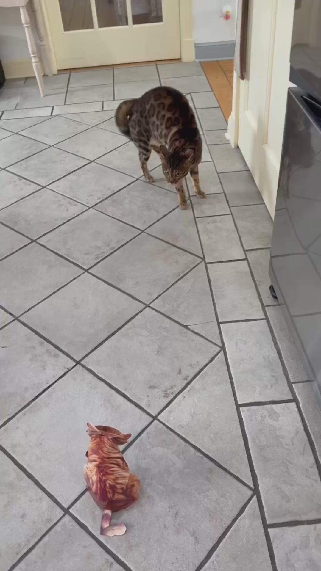 This owner bought a paper pop-up cat, but didn't expect this reaction from his cat. The cat seems confused and frightened, squaring up to the pop-up in a reaction which viewers found hilarious. The video was shared to Instagram by @therealmarkdazzle on the 14th of February 2026, where it received 4.9 million views and over 300,000 likes.