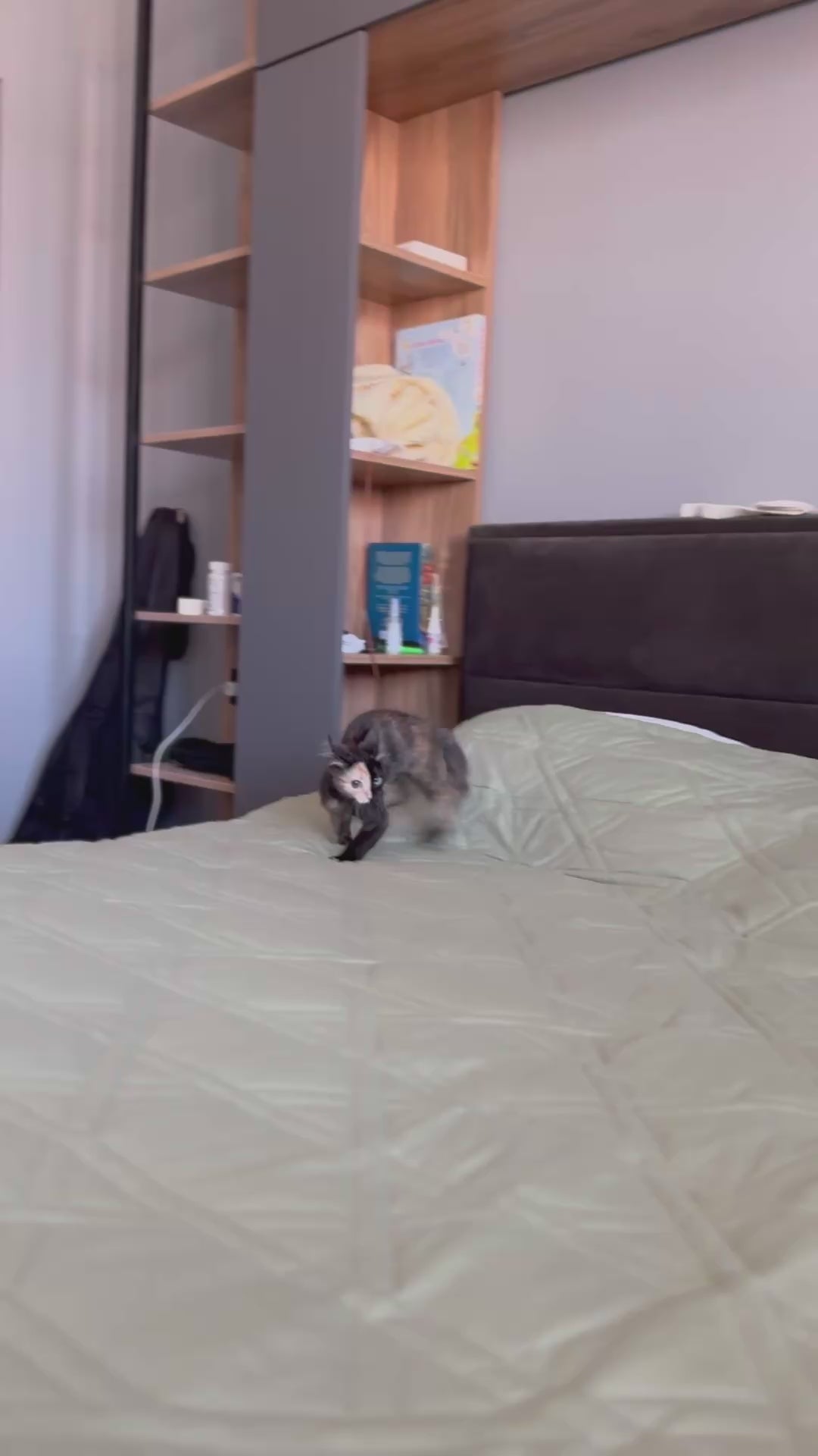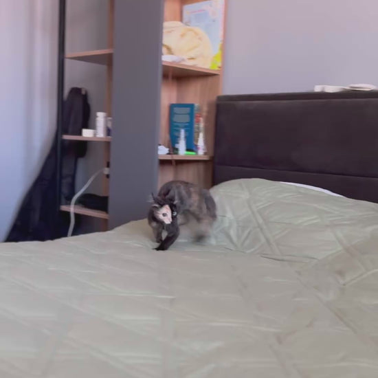 A striking kitten with a perfectly split two-toned face—half orange, half black—shows off its unique chimera markings and mismatched eyes. The video was originally posted on Instagram by @mantis_the_cat_one on September 4, 2025, where it went incredibly viral, receiving over 2.5 million likes and 27 million views.