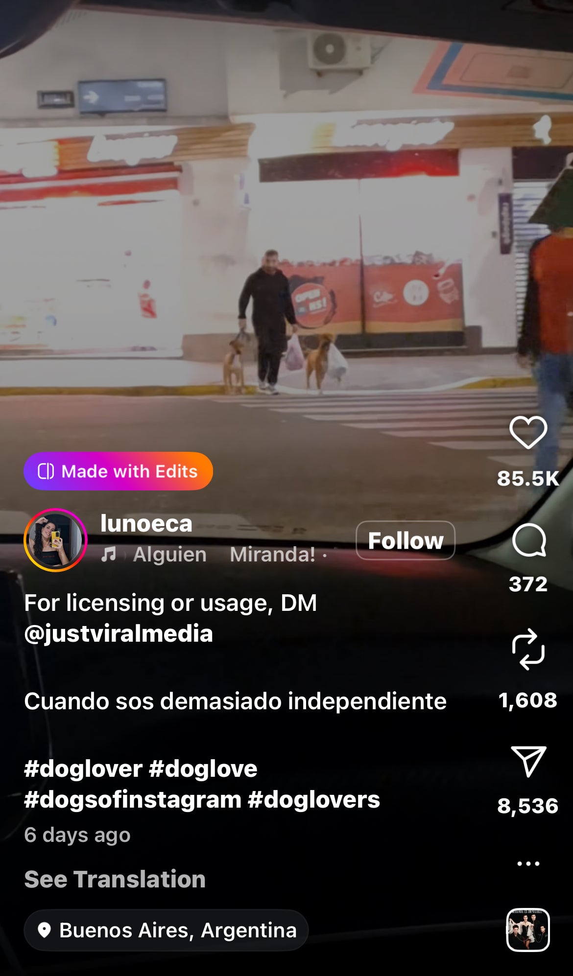 Caught on camera crossing the street like a true gentleman, this loyal dog carries one of the shopping bags to help his owner on the way home. The heart-melting display of teamwork and independence was shared on Instagram by @lunoeca on October 17, 2025, where it quickly went viral — earning over 85,000 likes and more than 850,000 views.