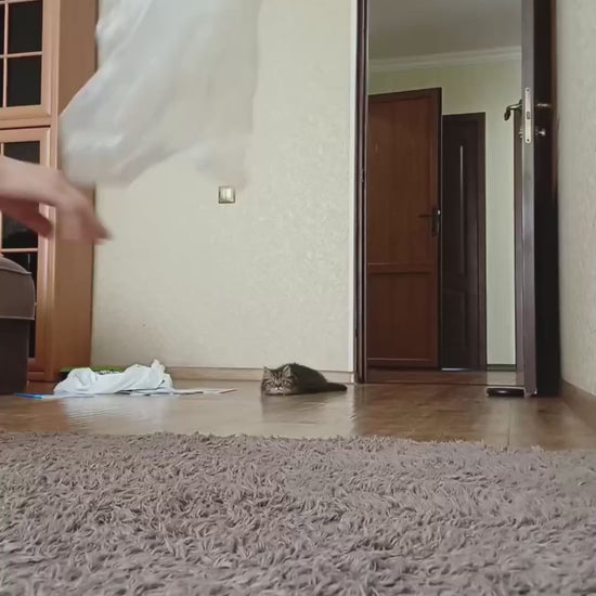 Video featuring a kitten having the time of his life playing with his owner by jumping up to catch plastic bags out of the air. Many found the video absolutely adorable, with the original post - by creator @tommy__little__cat on the 25th of August 2025 - going on to receive 108,000 likes and 1.3 million views.