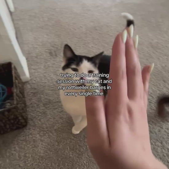 This owner was trying to train her cat, but her Rottweiler was desperate to be the star of the show, constantly interrupting and trying to prove that she also knows the moves. The funny video was shared to Instagram by @getjiggywithviolet on the 2nd of February 2026, where it received 1.7 million views and over 300,000 likes.